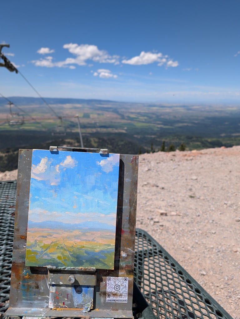 In six days of painting, I completed ten paintings, two of them larger works that I went back to finish on a second day. One of the best things about Driggs was that each artist had a dedicated space in the gallery, and we could change paintings out as they sold or as we completed new work. This made the trip far more rewarding in terms of sales and exposure and kept the energy high among the painters. In the end, I didn’t win any ribbons, but I sold three pieces, which made the experience a huge success in my eyes.