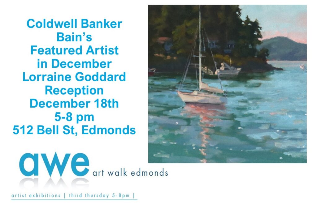 I’m excited to be joining the Edmonds Artwalk this month in Edmonds, Washington, as the featured artist at Coldwell Banker Bain! The artwalk itself is December 18, the third Thursday evening of the month from 5-8 PM, but my art will be viewable at the office December 7 through 31 daily from 10 AM – 4 PM.