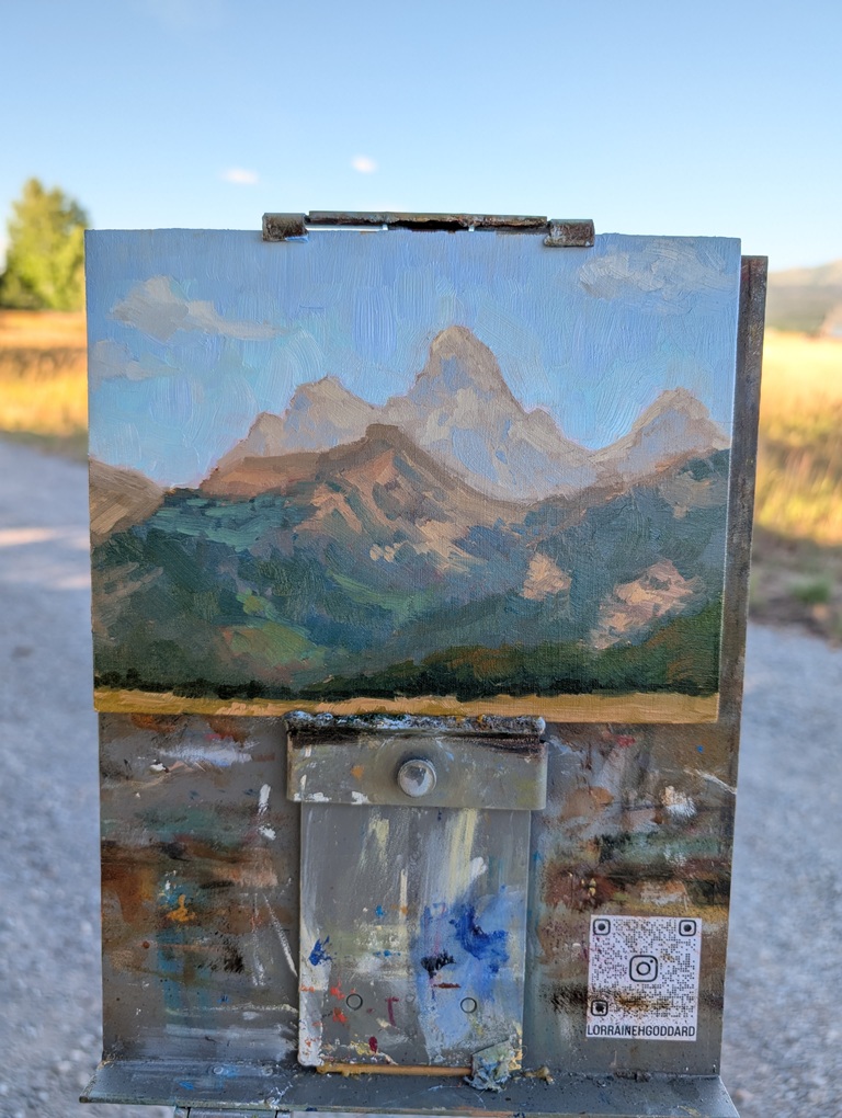 The little town of Driggs, Idaho, is just west of the Teton Range and one of the best towns for western art, Jackson, Wyoming. Situated in such a paintable landscape, it’s only natural that Driggs hosts a well-loved plein air competition—one that draws top names, as well as up-and-coming hopefuls like me!